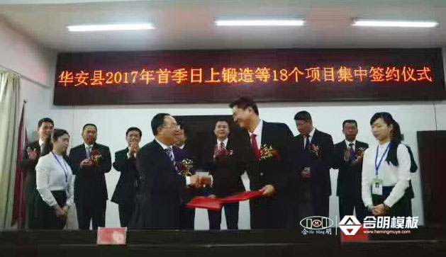 (合明模板總經(jīng)理黃志藝與華安縣領(lǐng)導(dǎo)簽約)