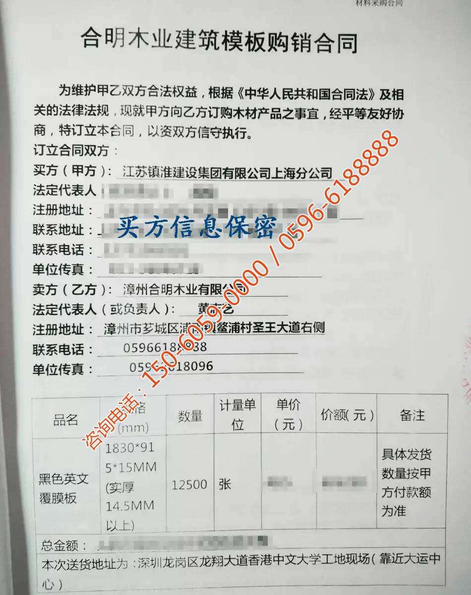 合明模板,堅硬耐磨、密實牢固、平整細膩、柔韌性好、超強防水、不易脫膠、周轉次數(shù)高,贏得廣大用戶青睞。合明模板質量看得見,高壓鍋沸水煮2小時不開膠,質量保證,好評不斷,品牌知名度高,獲得“中國建筑模板十大品牌”、“福建省著名商標”等多項榮譽。合明共有建筑模板近200種,如一建筑模板超市,產(chǎn)品種類多,可挑選,客戶都能在合明找到適合自己工地的產(chǎn)品。