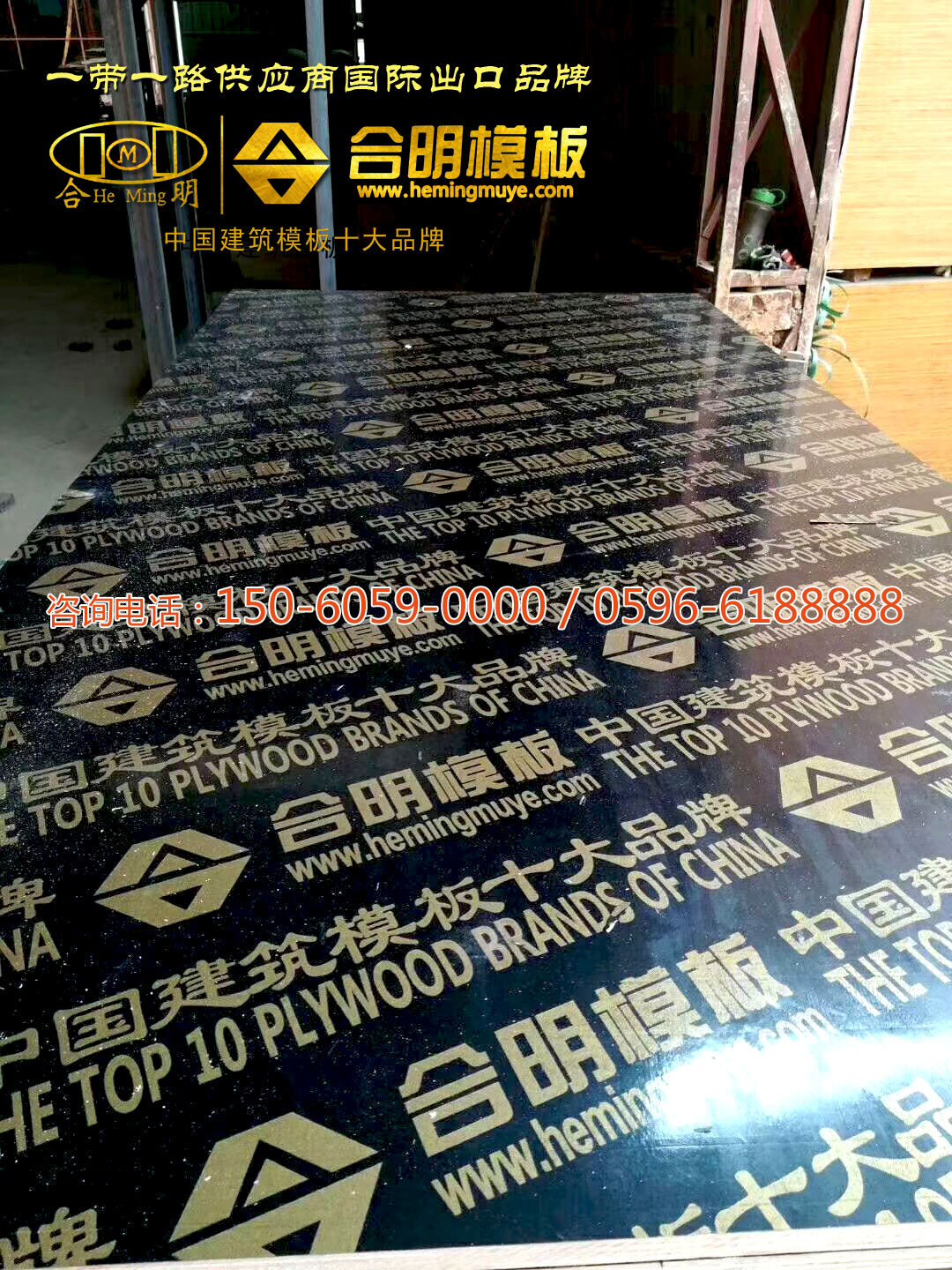 合明牌覆膜板品種多樣,包括合明全英文覆膜板、合明棕色膜覆膜板、合明黑色膜覆膜板、合明中英文覆膜板等。