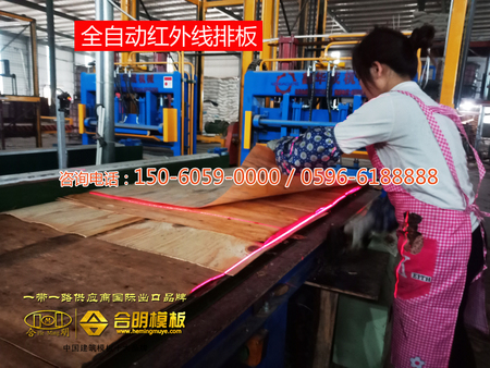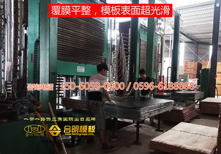 合明模板生產(chǎn)分為滾膠、排板、冷壓、熱壓、裁板、成品包裝等步驟。