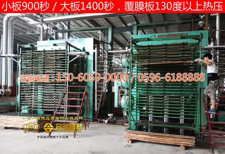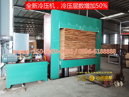 滾好面膠或者覆好膜的板,用熱壓機(jī)進(jìn)行熱壓。合明熱壓機(jī)是全國(guó)領(lǐng)先新型熱壓機(jī),可根據(jù)不同種類模板進(jìn)行各種高溫?zé)釅?,熱壓時(shí)間超長(zhǎng),小板900秒大板1400秒,一般覆膜板130度以上熱壓,高脂覆膜板150度超高溫?zé)釅?,熱壓好的模板最多可周轉(zhuǎn)38次。