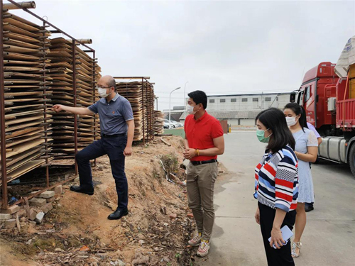 合明木業(yè)主要負責(zé)人黃志藝、黃志南陪同各位領(lǐng)導(dǎo)參觀考察了合明產(chǎn)業(yè)園,并認真講述合明木業(yè)在近段時間內(nèi),關(guān)于疫情防控、員工返崗、進出口業(yè)務(wù)和安全生產(chǎn)等一系列情況。來訪領(lǐng)導(dǎo)鼓勵合明迎難而上,提升企業(yè)競爭力和服務(wù)力。