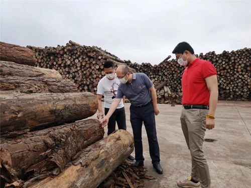 合明原木堆場,領(lǐng)導(dǎo)認真考察原木進口情況