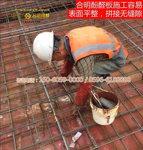 據(jù)反饋,合明酚醛板板面平整,施工中模板之間拼縫整齊,脫模后墻體整潔;模板韌度好,承壓力高,在規(guī)定時間內拆模模板可周轉8次,綜合核算下來性價比極高。