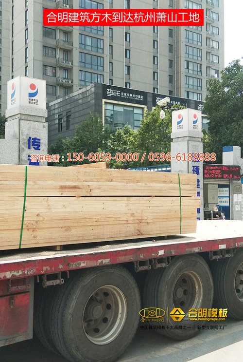 合明建筑方木新鮮筆直,質(zhì)地厚實(shí),韌性十足,兩人使勁踩不壞,廈門交通軌道等眾多建筑工地使用。