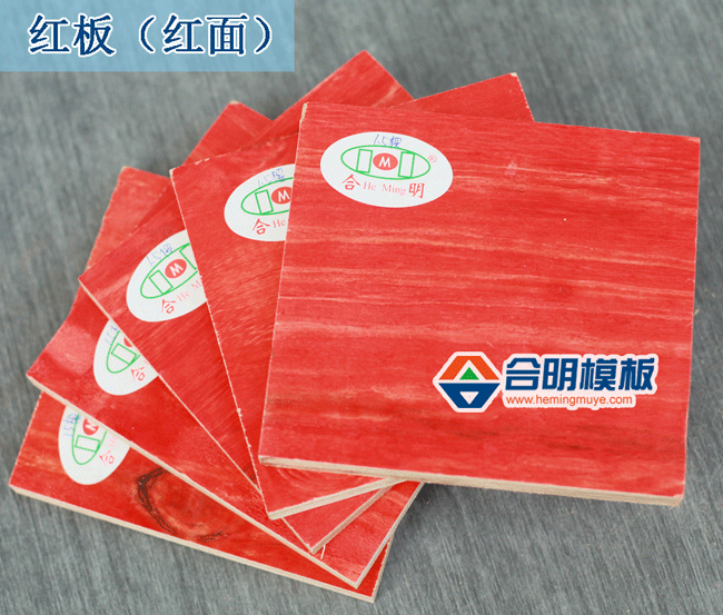 合明紅板表面過防水膠,顏色有鮮紅色、黃色、鐵紅色、黑色、清油(無色)、苯酚等。14mm厚小板周轉(zhuǎn)次數(shù)達(dá)8次以上。